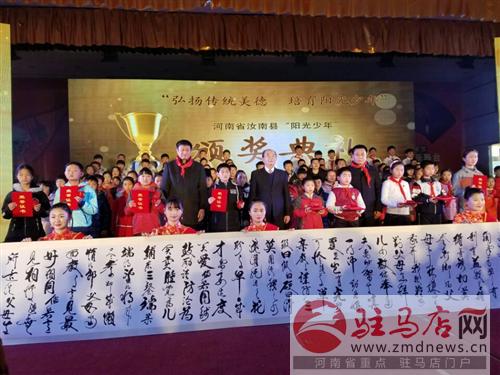 12月27日上午,汝南縣舉行“弘揚傳統美德,培育陽光少年”活動,鄭博涵、劉昕、黃宇、沈雨蝶、鄧佳音、胡星宇、邢雨晴、劉陸一、趙錫佑、付宜煊等10名陽光少年受到隆重表彰。他們還代表陽光少年向全縣十萬青少年朋友發出“弘揚傳統美德從我做起”倡議征集簽名活動。