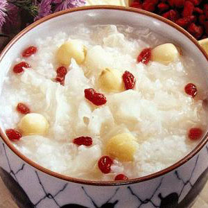 桂圓肉15克,粟米100—200克。將桂圓肉洗凈與粟米同煮。先用武火煮開,再用文火熬成粥。桂圓肉性味甘溫,能補益心脾,養血安神。