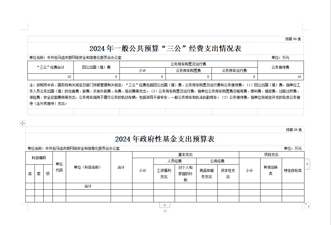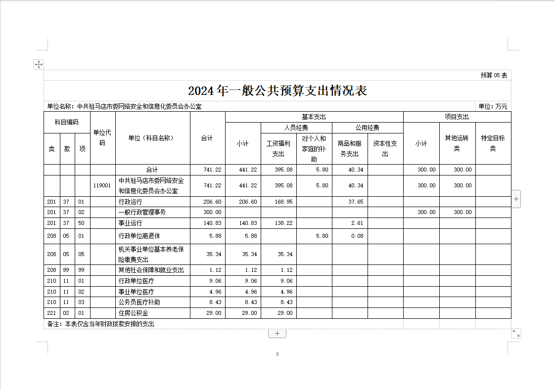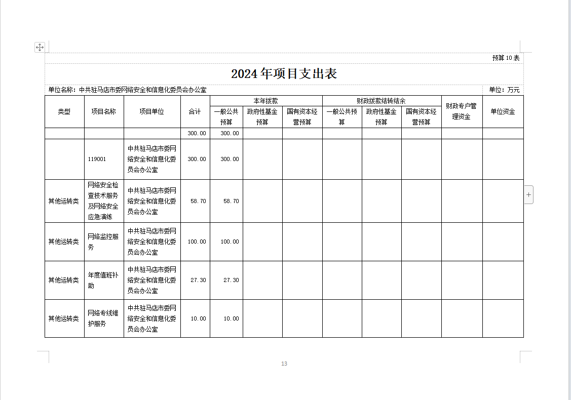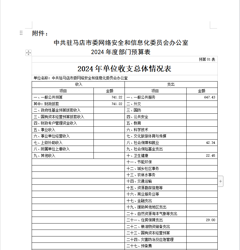 附件:中共駐馬店市委網絡安全和信息化委員會辦公室2024年度部門預算表