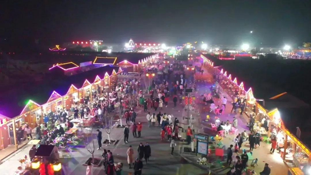 平輿藍天芝麻小鎮打鐵花、踩高蹺、抬花轎、劃旱船、舞龍獅、斗雞、嗩吶大賽、大鼓書、戲曲茶座、非遺展示,各類民俗活動閃亮登場,恐龍侏羅紀、軍事航天展、夢幻燈光秀等驚艷亮相,吸引不少市民帶著親友體驗鄉村年味、感受豐富多彩的鄉村民俗文化。