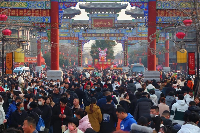 四、節慶活動精彩紛呈喜慶祥和迎新年春節期間,全市大多天氣晴好,氣溫適宜,群眾出游愿望強烈,各旅游景區更是傾心打造了“有溫度、有內涵、有年味”的文旅“年味大餐”,不斷為全市春節假期增添喜慶、熱鬧和祥和的氣氛。全市各景區人氣爆棚,游客絡繹不絕,處處洋溢著歡樂祥和的新春氛圍,游客接待量呈上升趨勢,嵖岈山、老樂山、金頂山、南海禪寺、皇家驛站、三秋醋博園、藍天芝麻小鎮等景區游客增長明顯,特別是皇家驛站景區大年初一更是疫情之后首次日突破10萬人次。