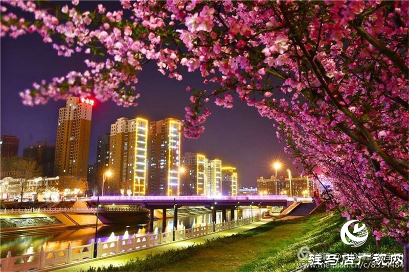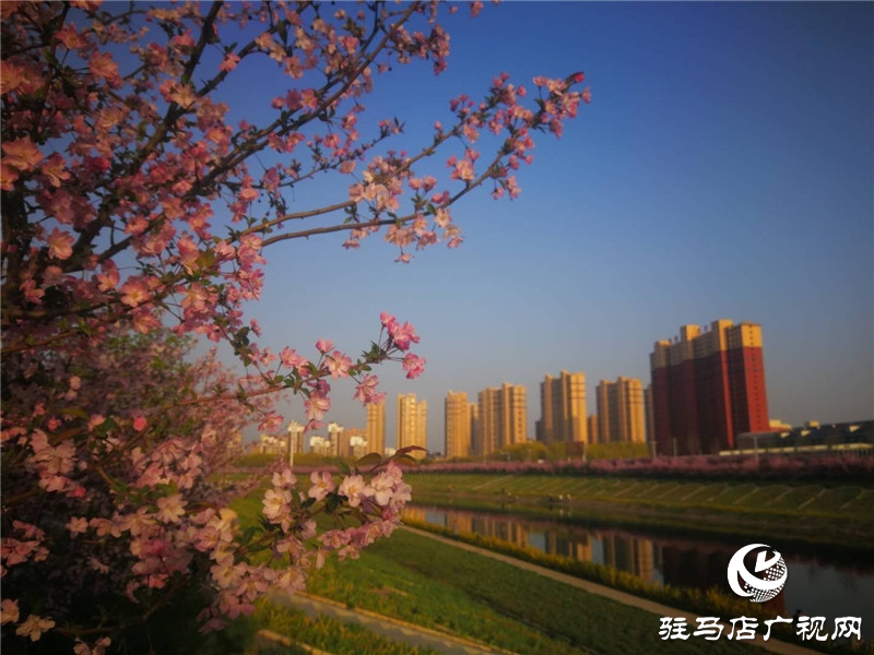 兩岸綠樹成萌,堤岸海棠飄香