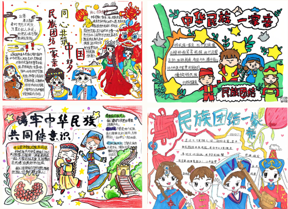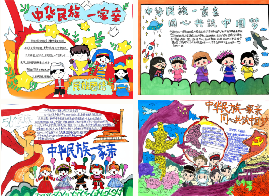 同學們以畫筆為媒,借色彩傳情,全心投入到創作之中。畫紙上,維吾爾族的艾德萊斯綢紋樣與藏族的特色圖案交相輝映,“中華民族一家親”“民族團結”等醒目標題與生動圖畫相輔相成。有的作品描繪了各民族攜手歡歌的場景,有的講述了民族團結的動人故事,還有的抒發了對祖國統一、民族復興的美好向往。每一幅作品都主題鮮明、構思巧妙,既展現了同學們的藝術才能,也成為凝聚民族情感、表達愛國情懷的生動載體。